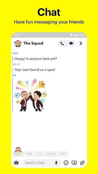 • Express yourself with Lenses, Filters, Bitmoji and more!